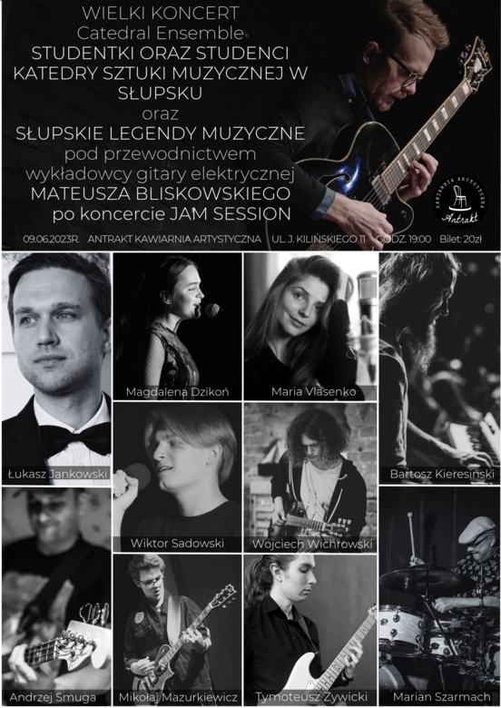 Spotkajmy się 9 czerwca na koncercie w Antrakt Kawiarnia Artystyczna. Gwiazdą wieczoru będzie Catedral Ensemble oraz studenci Katedry Sztuki Muzycznej. Po koncercie nie przegap muzycznego spektaklu - Jam Session!