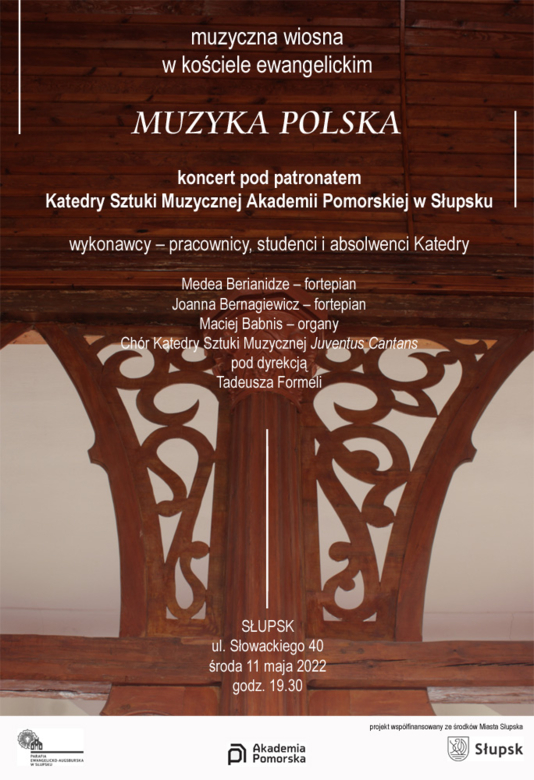 Zapraszamy na koncert Katedry Sztuki Muzycznej Akademii Pomorskiej w Słupsku, który odbędzie się w najbliższą środę (11.05) o godzinie 19.30 w Kościele Ewangelickim w Słupsku (skrzyżowanie ul. Prostej i Słowackiego).