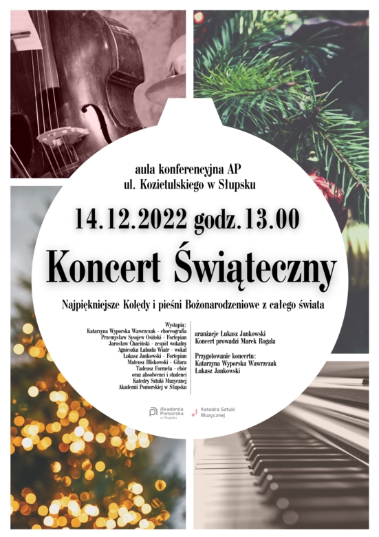 Katedra Sztuki Muzycznej Akademii Pomorskiej w Słupsku zaprasza na KONCERT: "Najpiękniejsze Kolędy i pieśni Bożonarodzeniowe z całego świata"
